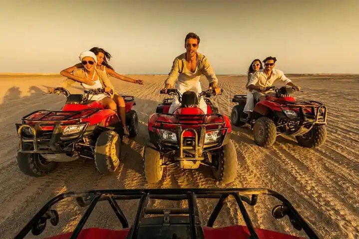 Quad bike through the desert, meet Bedouins, and enjoy sunset, dinner, and music under El Gouna’s sky.